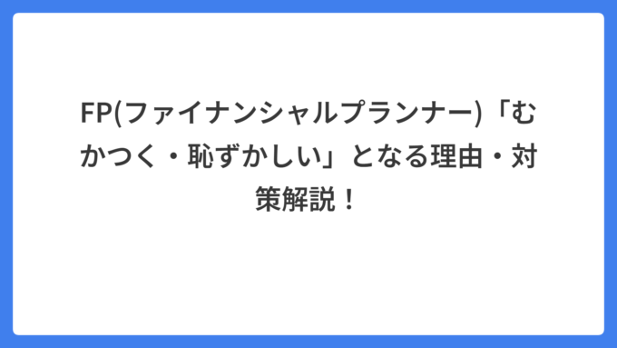 FPもマネーライフプランナー同様、怪しまれることが多いです。